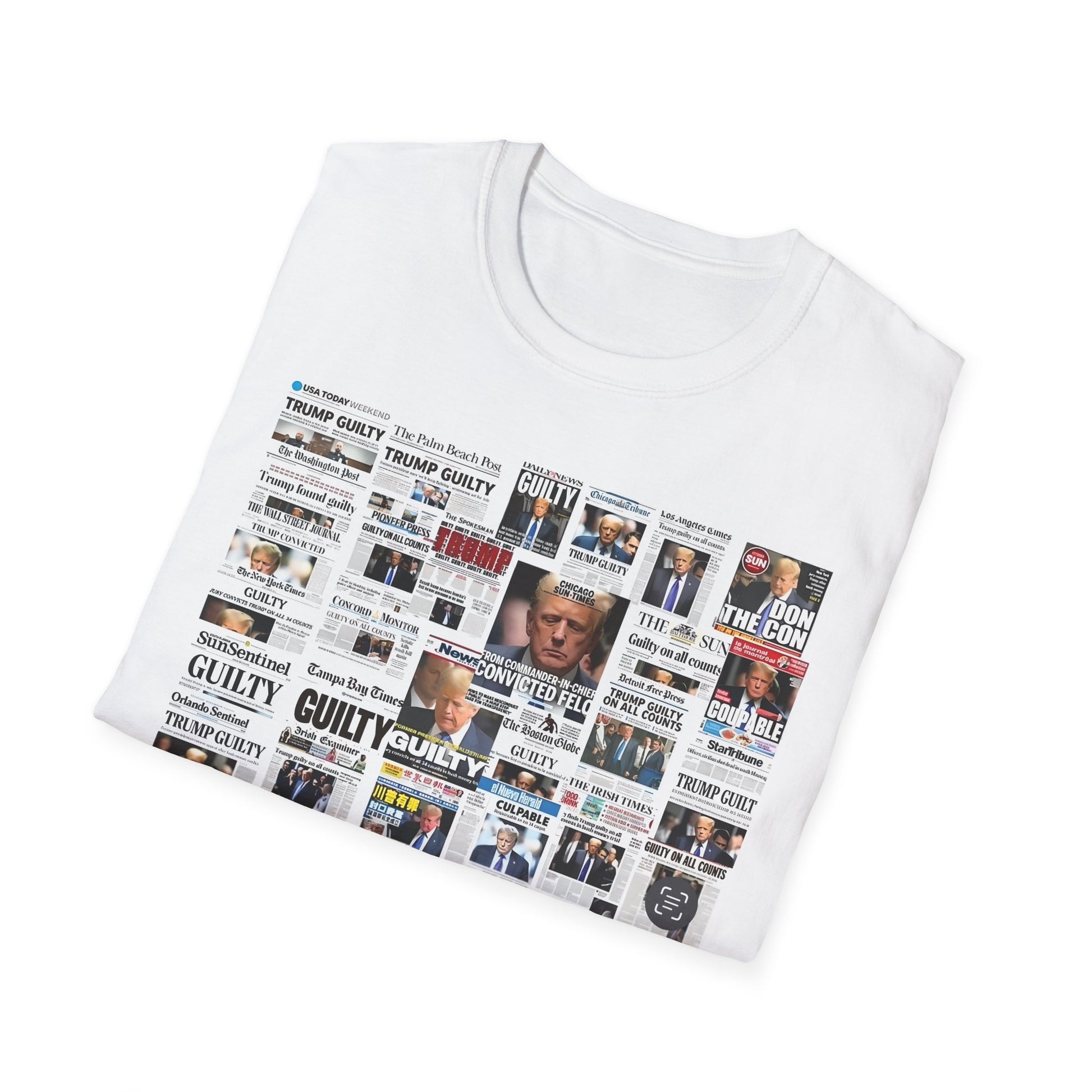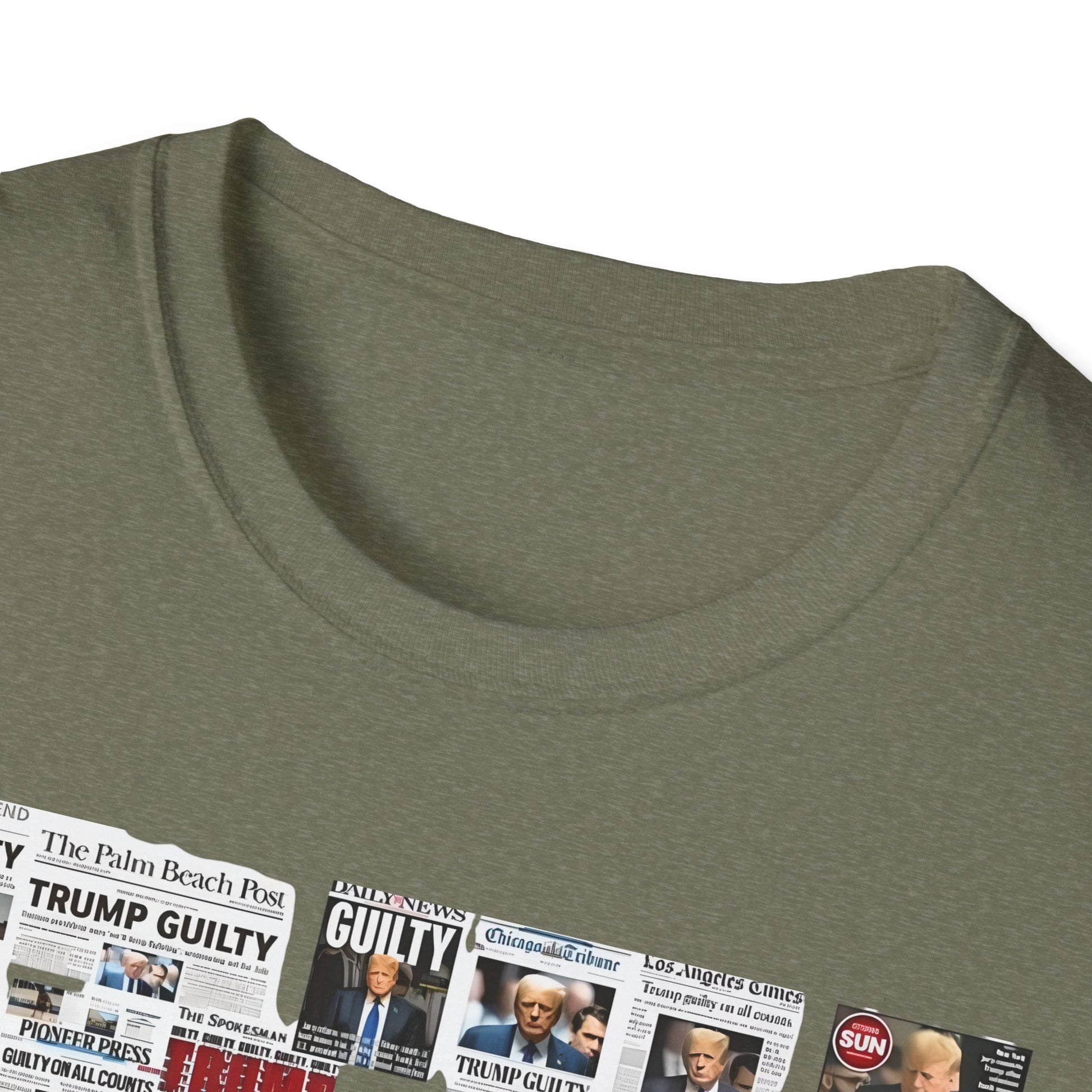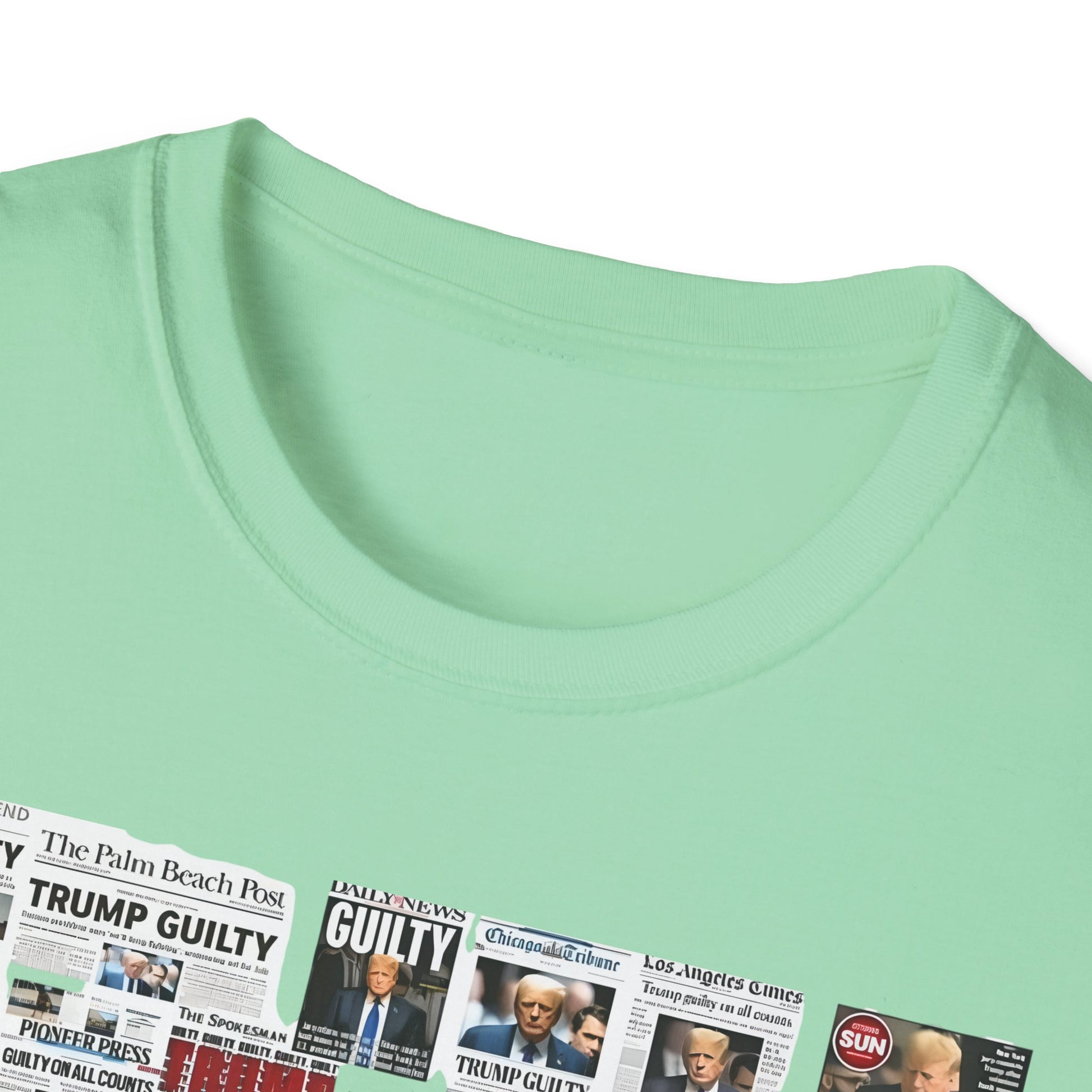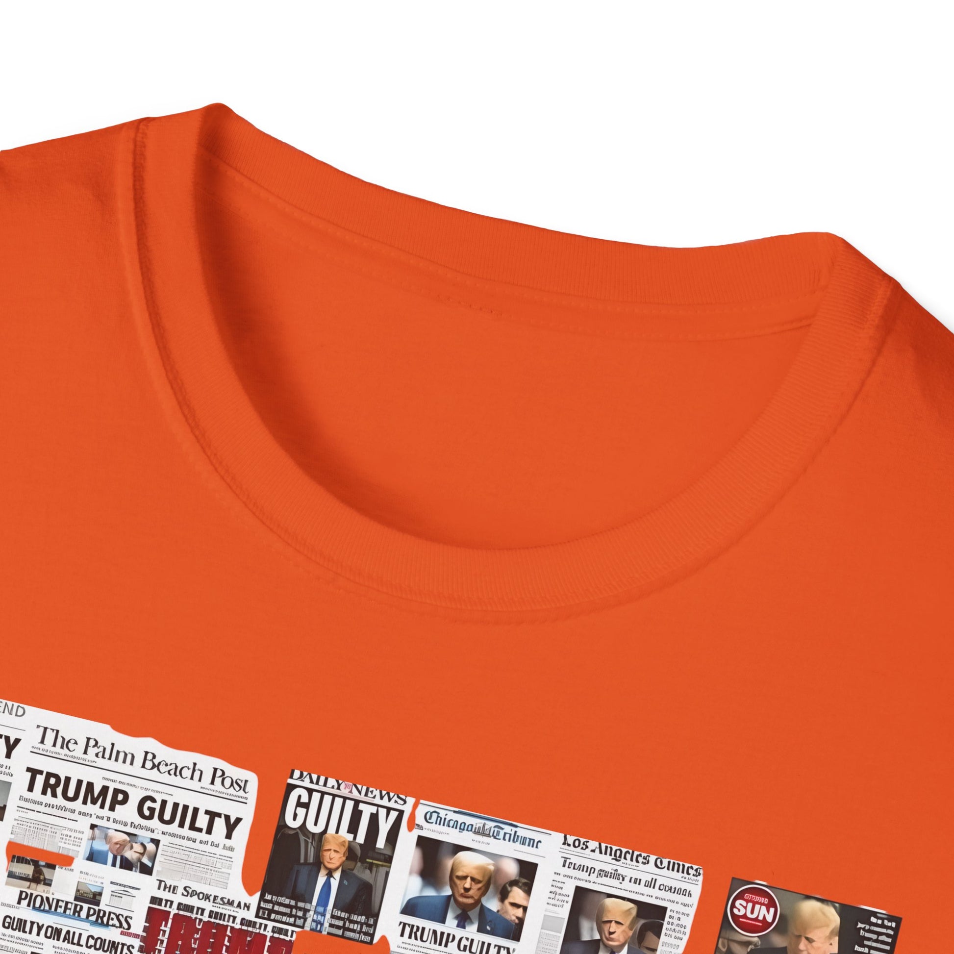 Make a powerful statement with this edgy and unapologetic t-shirt featuring the phrase "Coming Soon – No Due Process Necessary" boldly printed above a striking collage of newspaper clippings declaring Trump guilty. Whether you're protesting political corruption, expressing frustration with injustice, or simply making your stance clear, this shirt pulls no punches.
