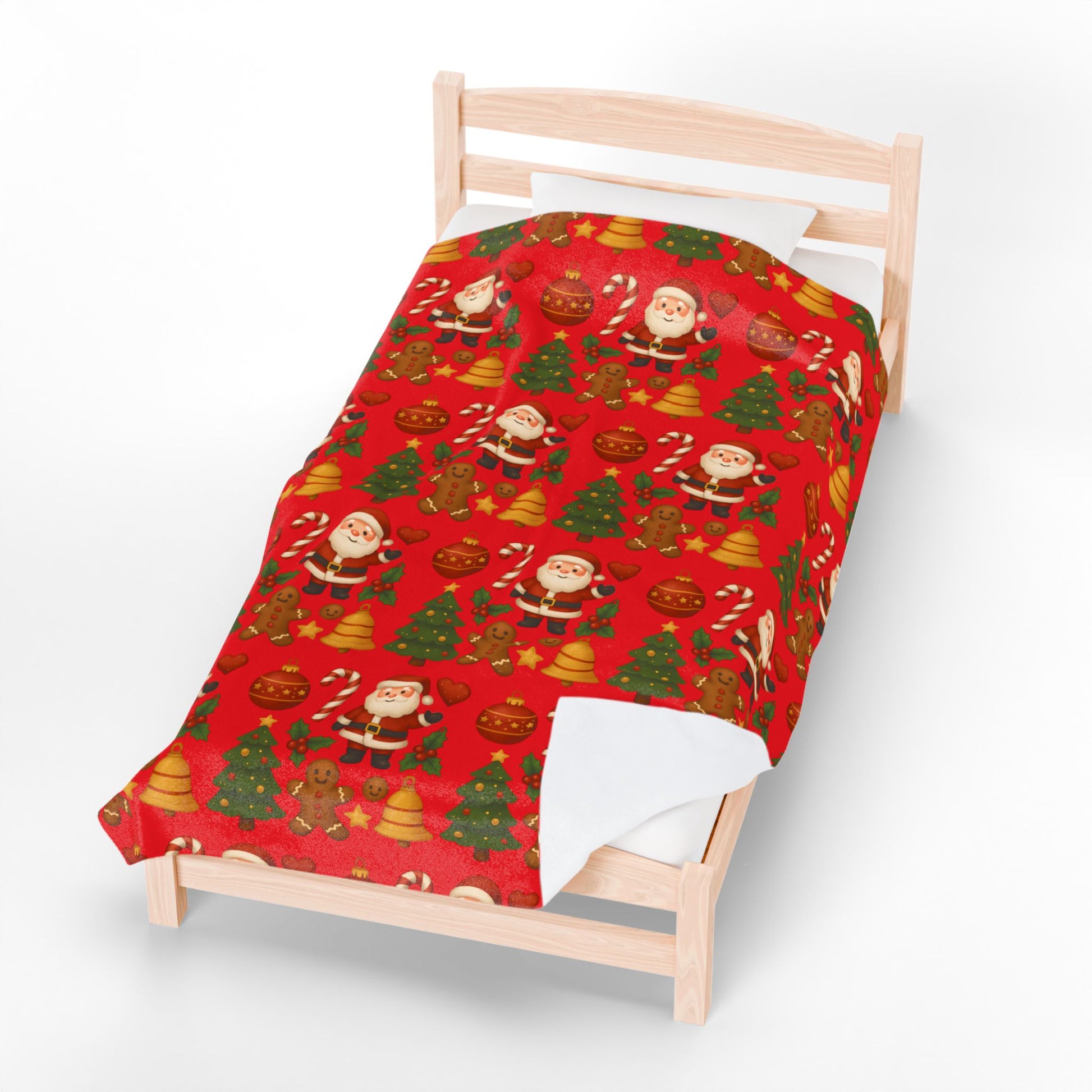 Cozy Christmas Velveteen Plush Blanket, Holiday Throw Blanket, Festive Home Decor, Snuggly Gift for Kids, Winter Ornament