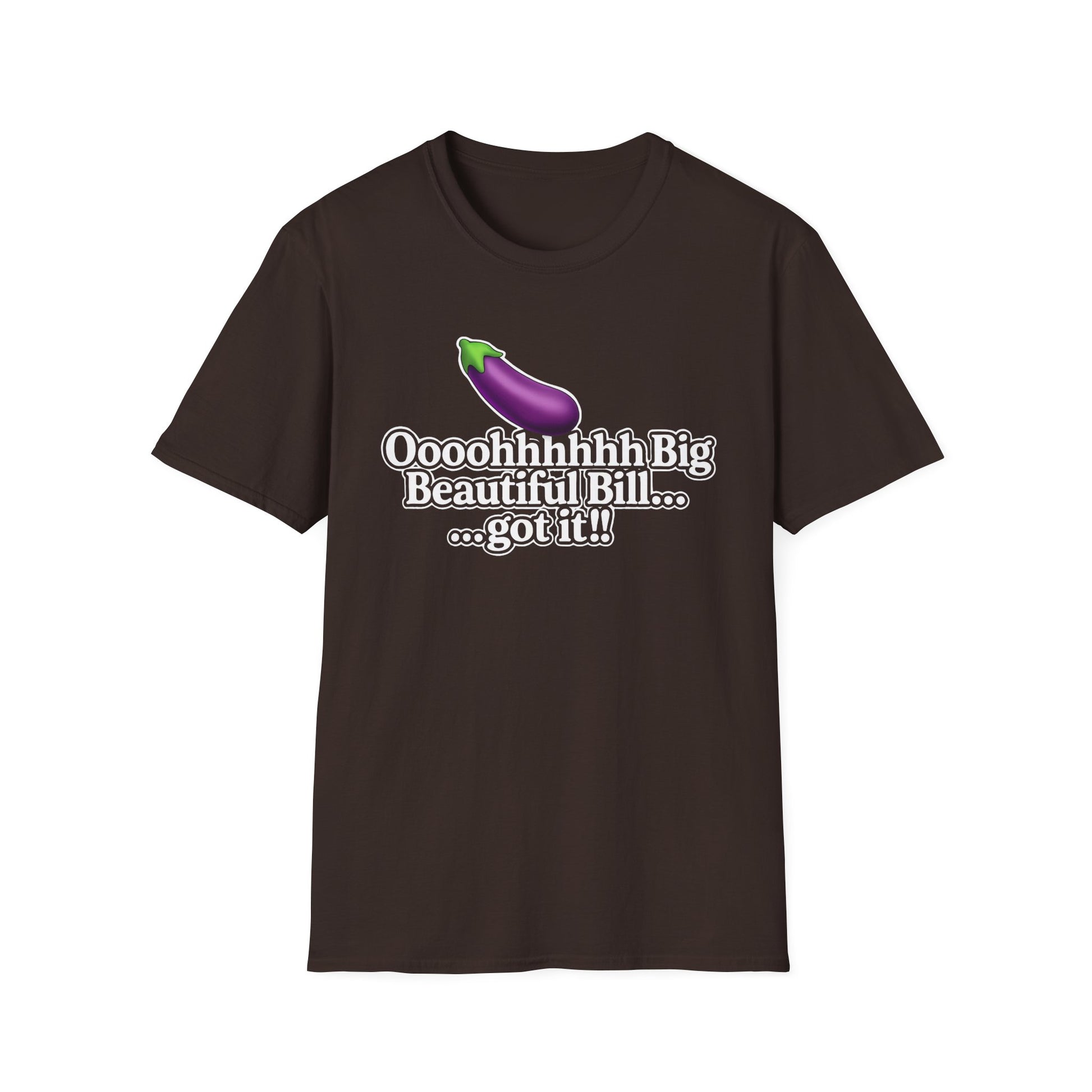 Eggplant Graphic T-Shirt — “Oooohhhhh Big Beautiful Bill...got it!” Funny Text Tee, Hmmmm.....Bill, unisex tee just in time for the Holidays!!