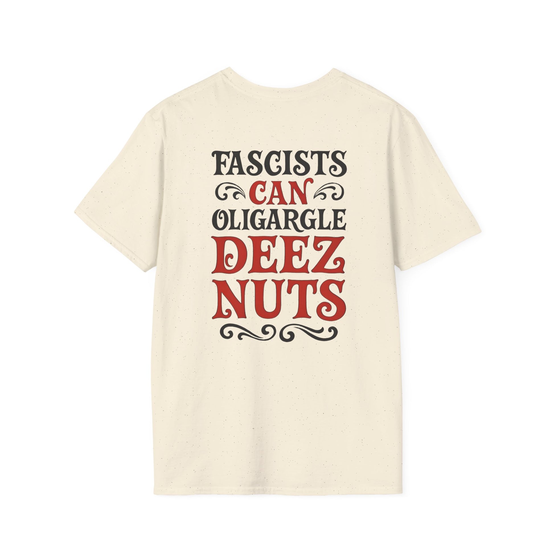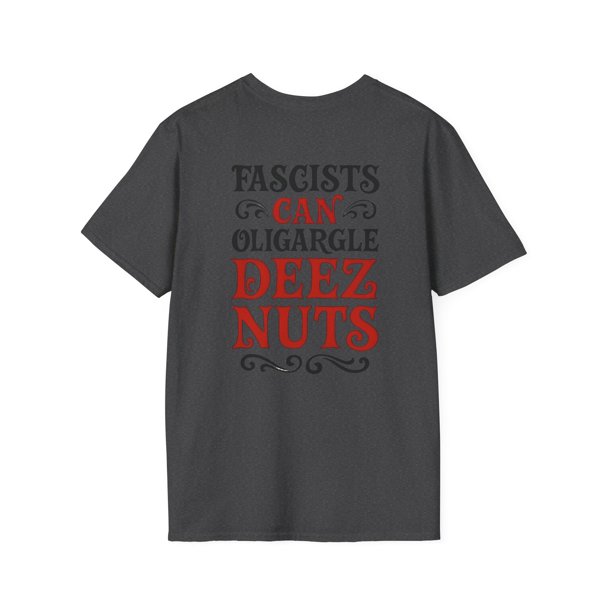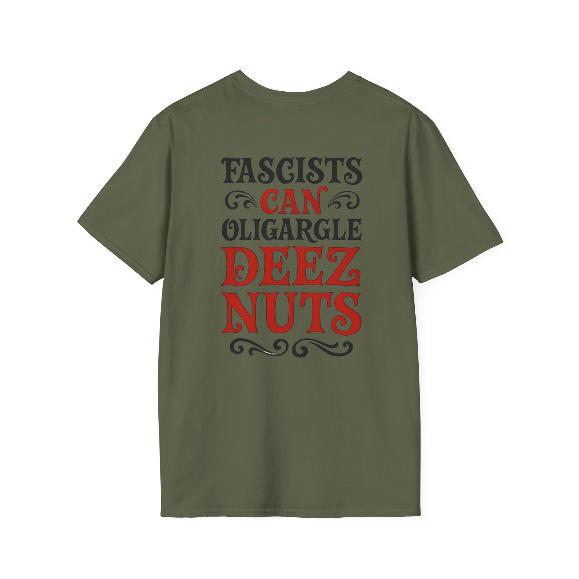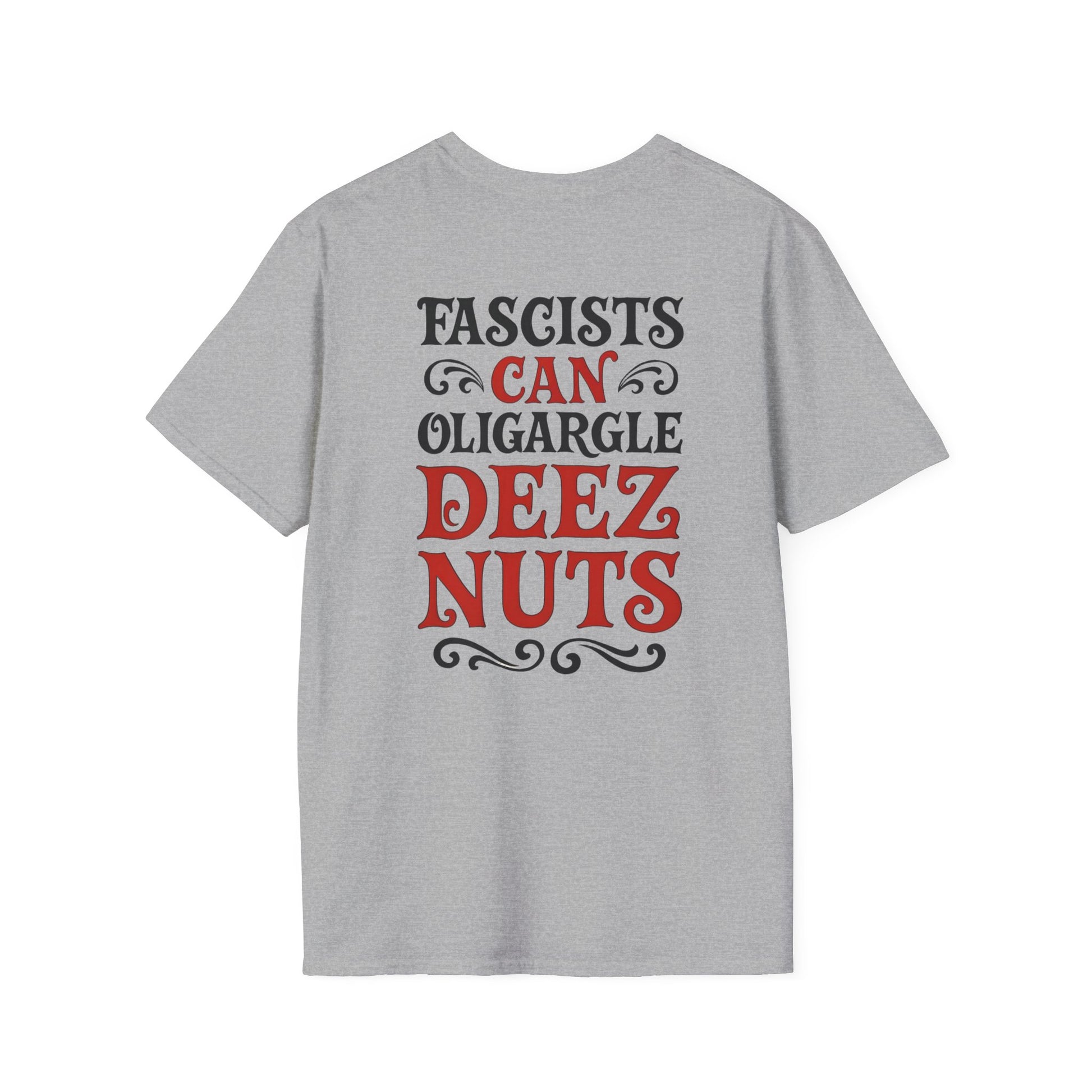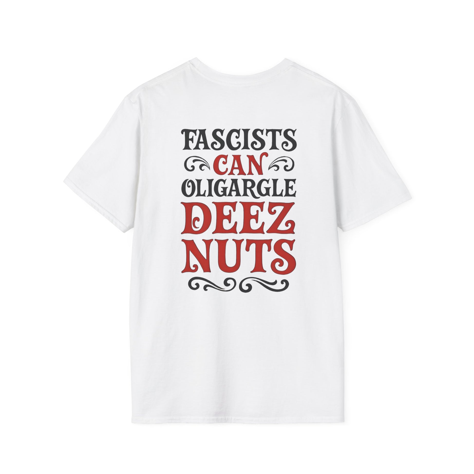 Fascists Can Oligargle Deez Nuts (back) Keep ICE out of the Barrio unisex tee, softstyle printed front and back anti ICE Tee