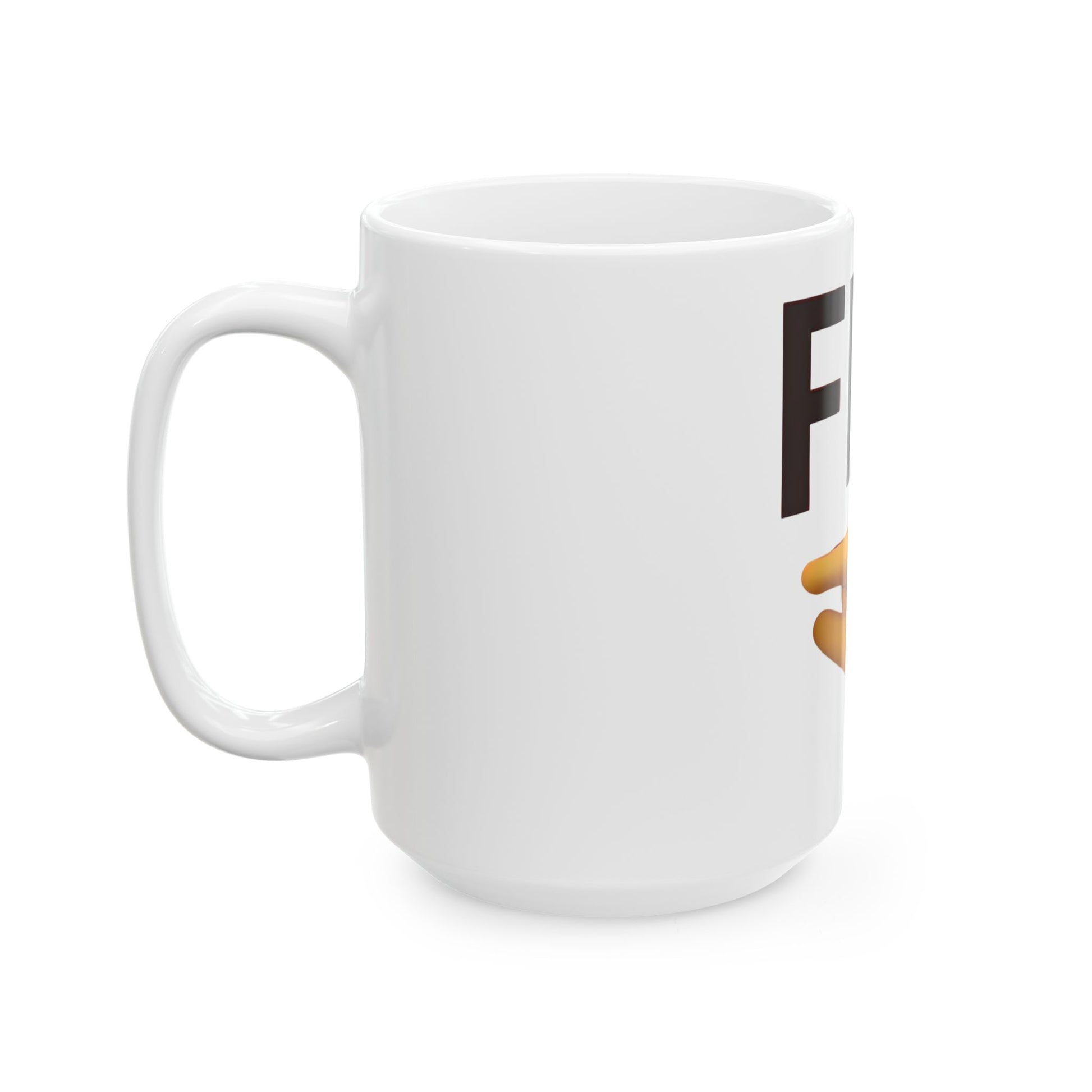 Fun Gesture Ceramic Mug with FDT Design, Coffee Cup for Friends, Unique Gift for Tea Lovers, Quirky Housewarming Mug, Office Humor Mug