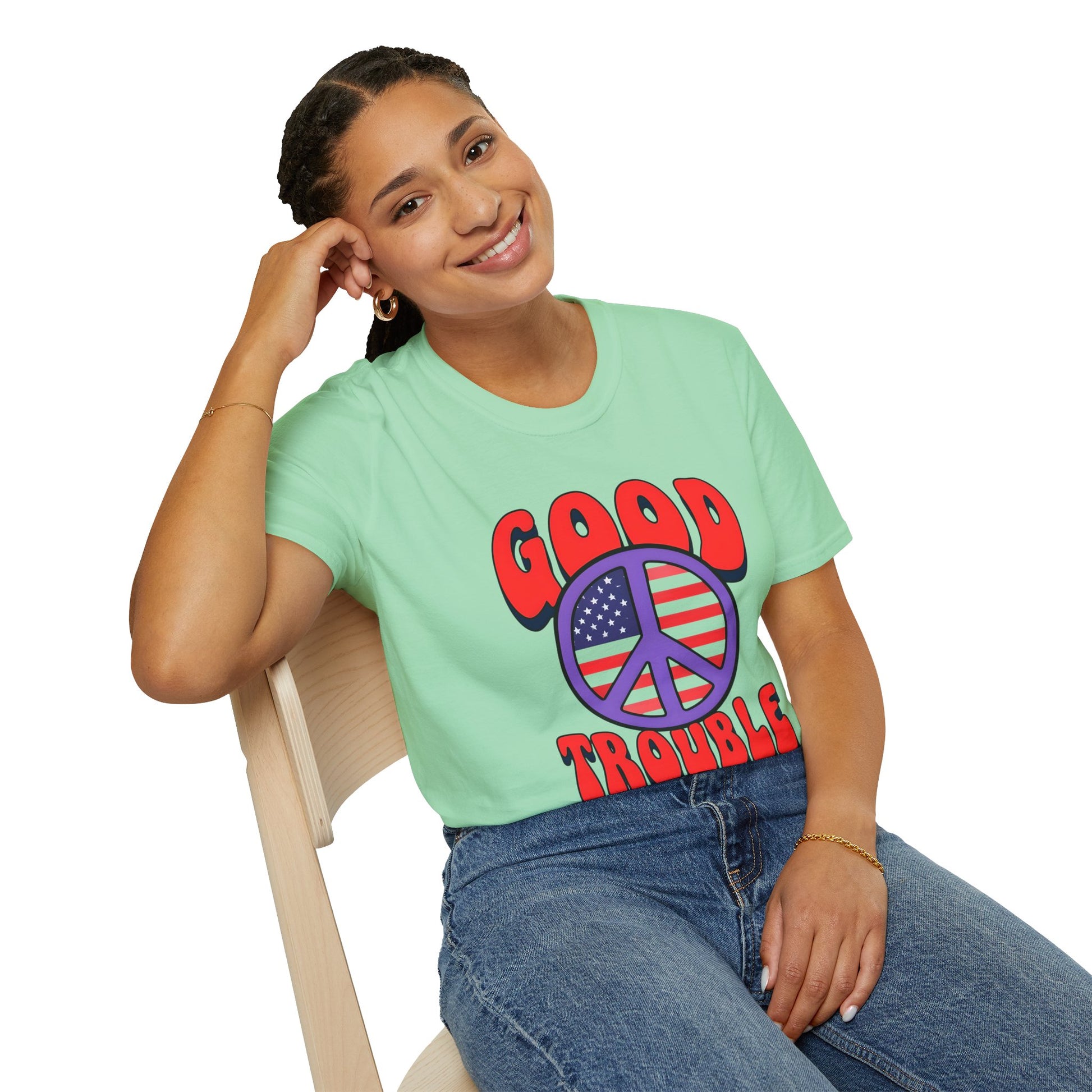 Peace & Good Trouble Unisex T-Shirt, Retro Graphic Tee, Casual Wear, Gift for Activists, July 4th Celebration Shirt