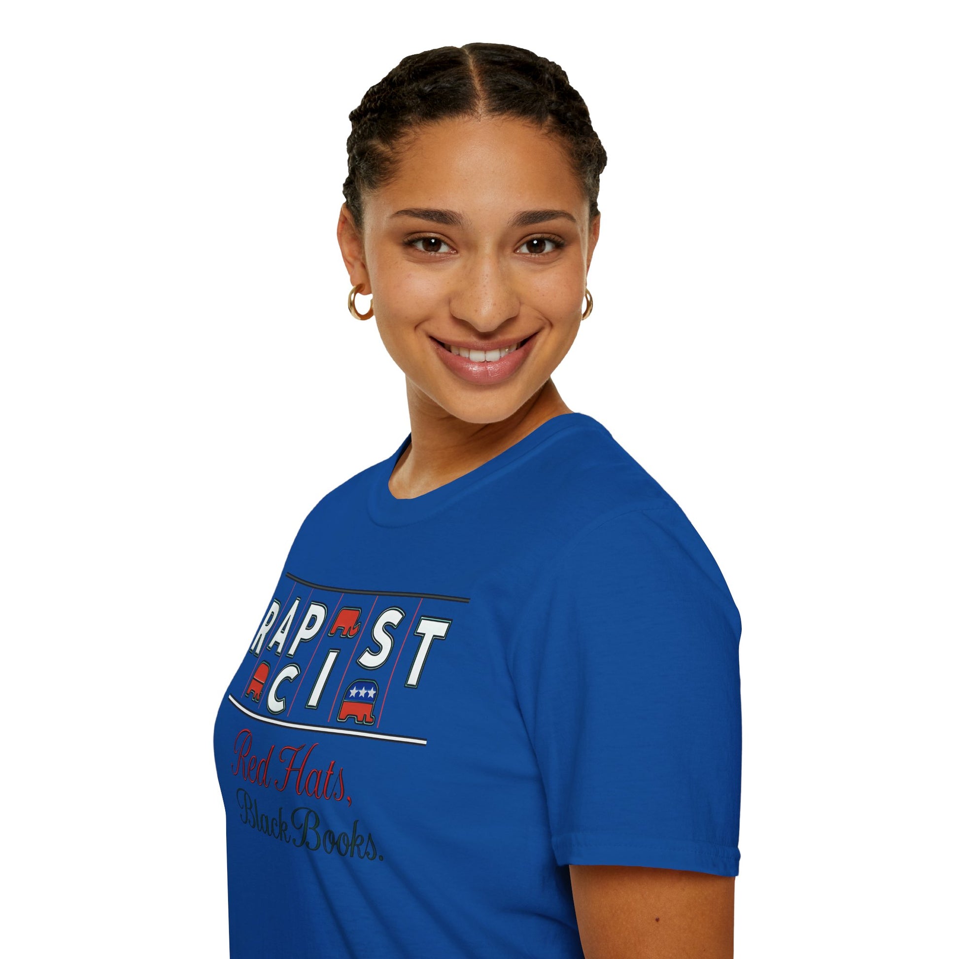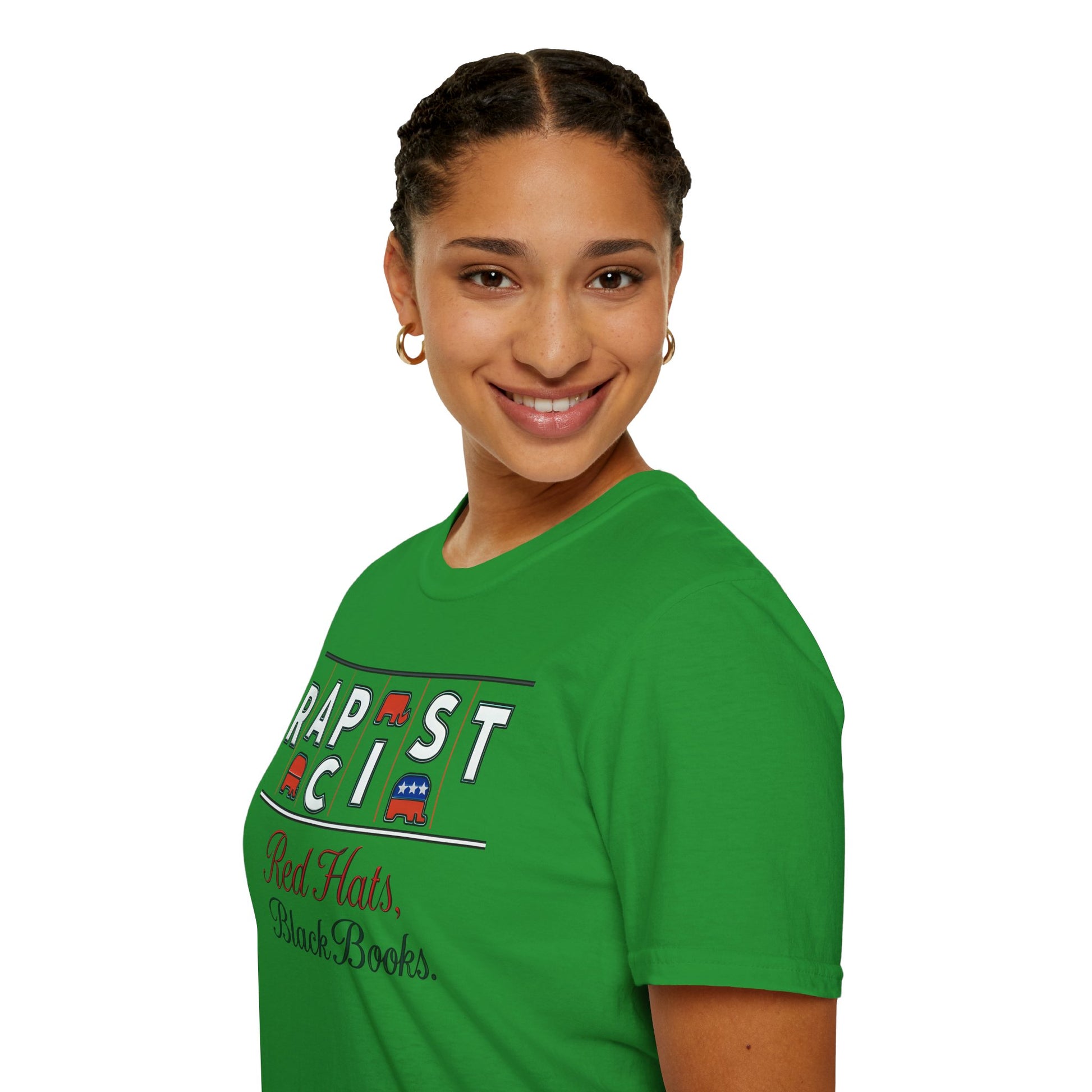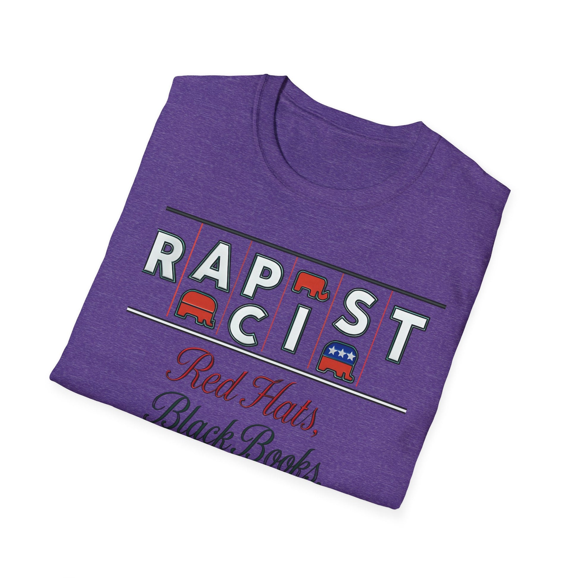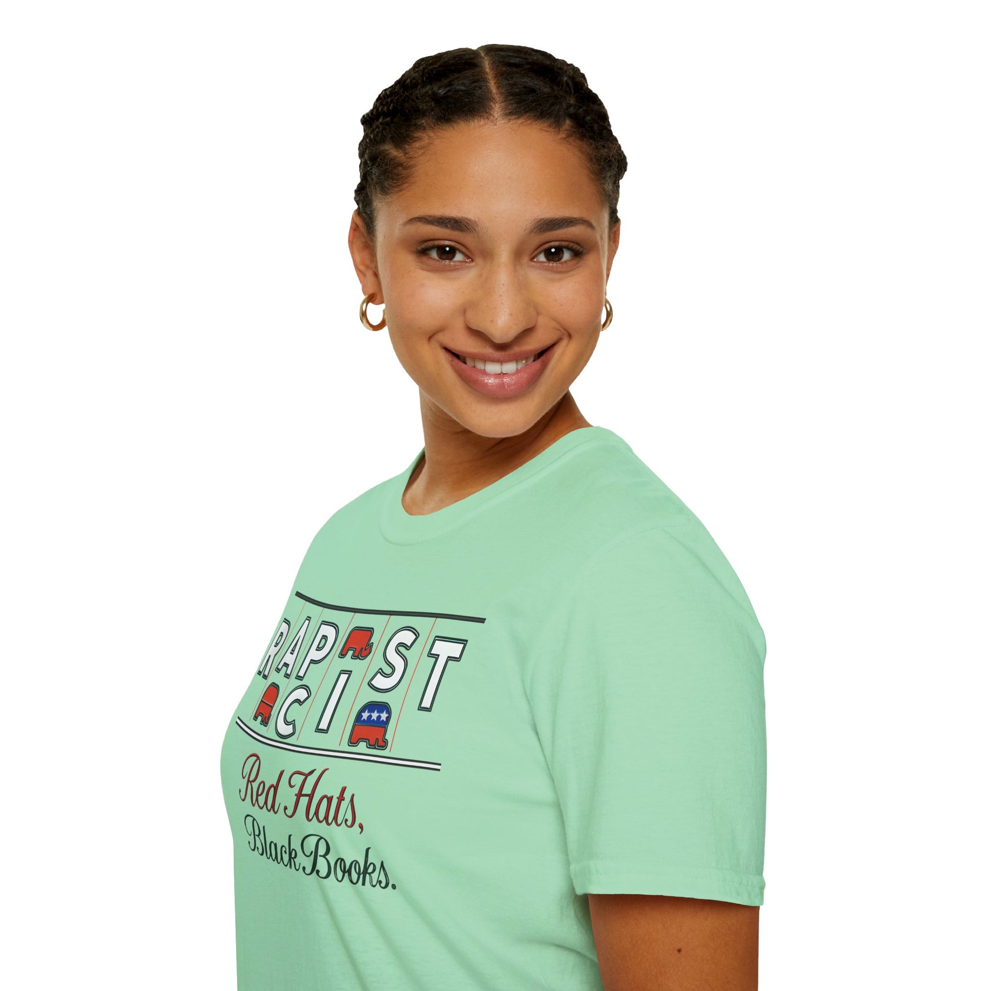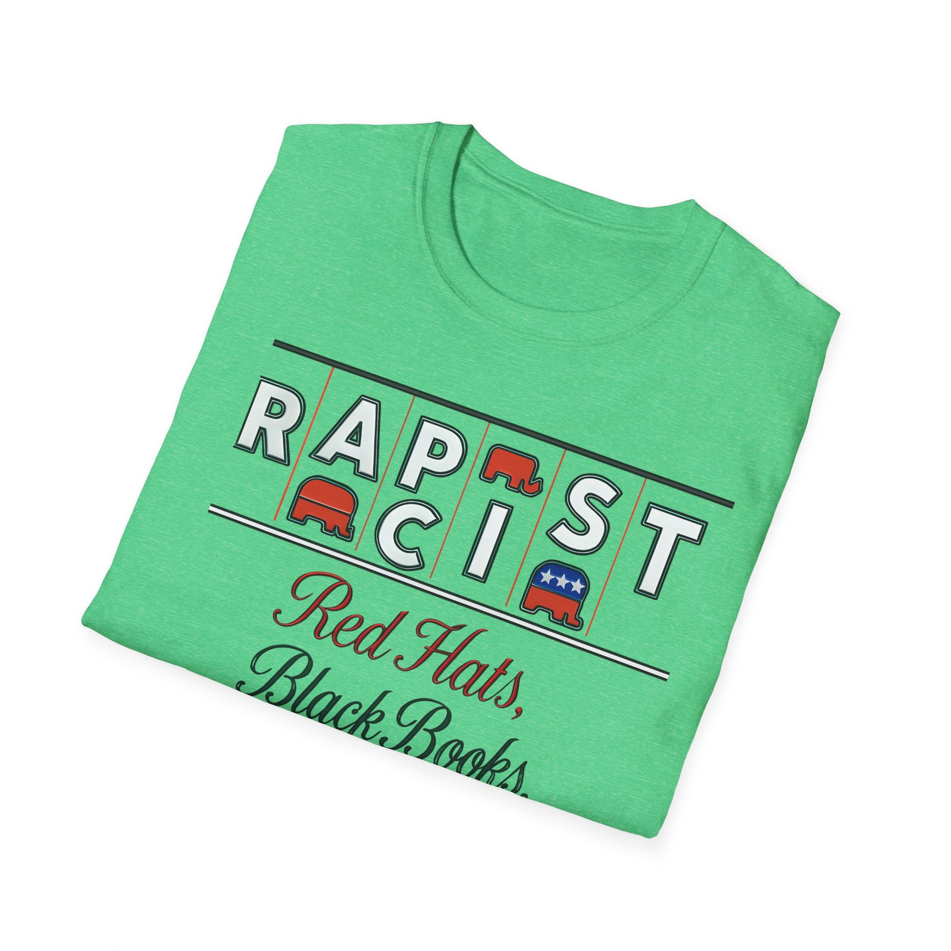 Red Hats, Black Book. Unisex Softstyle T-Shirt, Casual Tee, Statement Shirt, Political Humor, Gift for Activists, Unisex Graphic Tee
