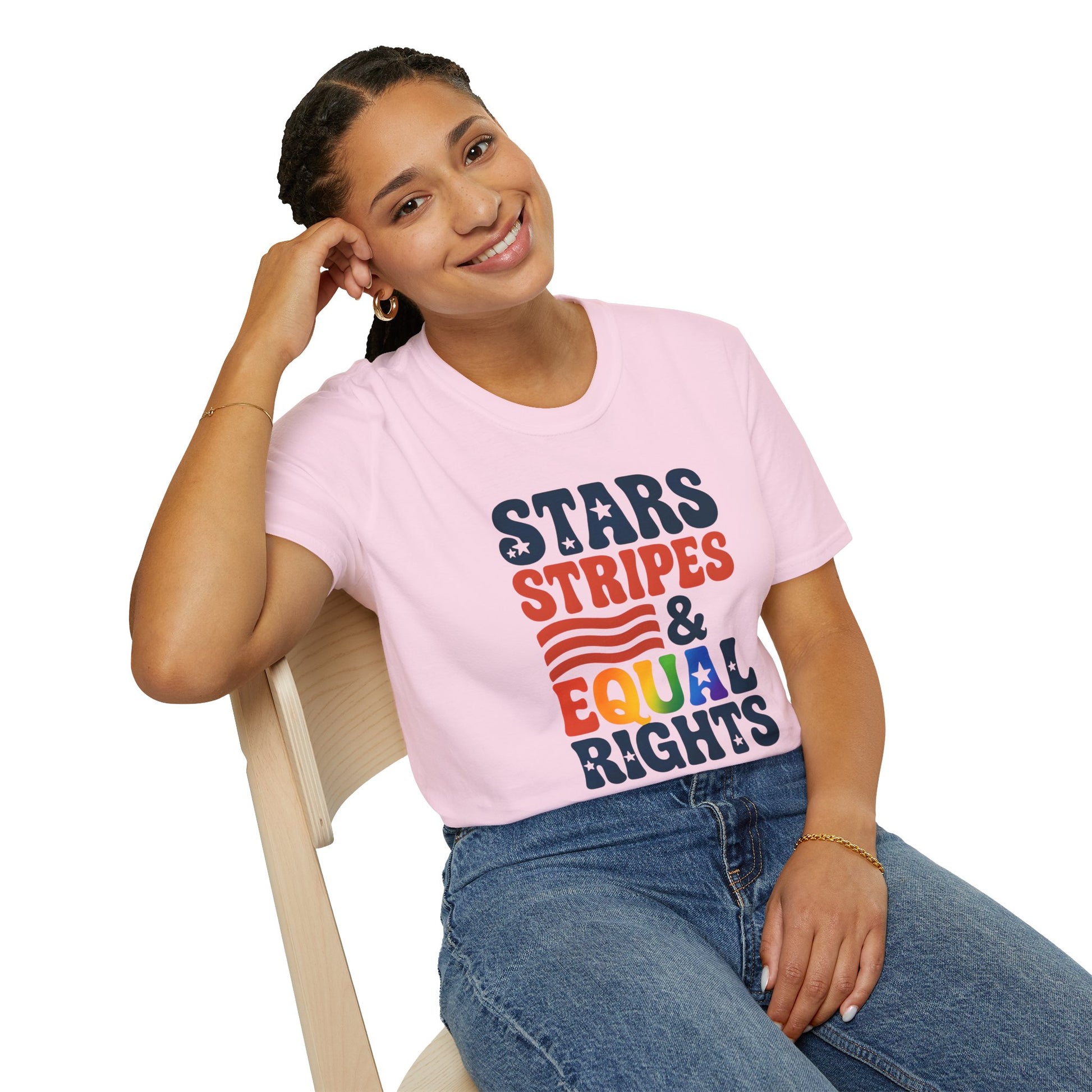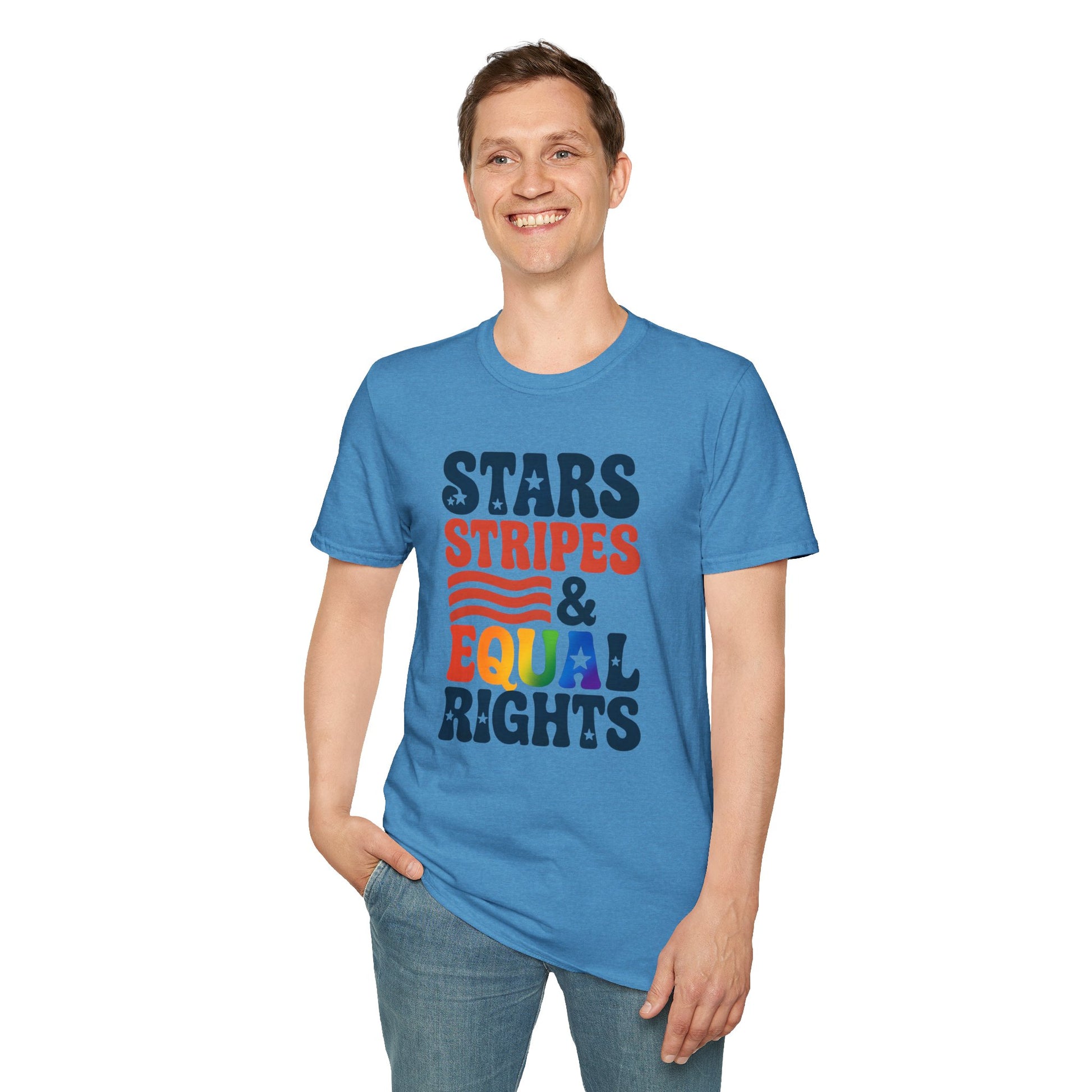 Stars Stripes and Equal Rights unisex tee, Casual protest Gift, LGBTQ tee, Unisex Softstyle Shirt, Family Wear, gay rights