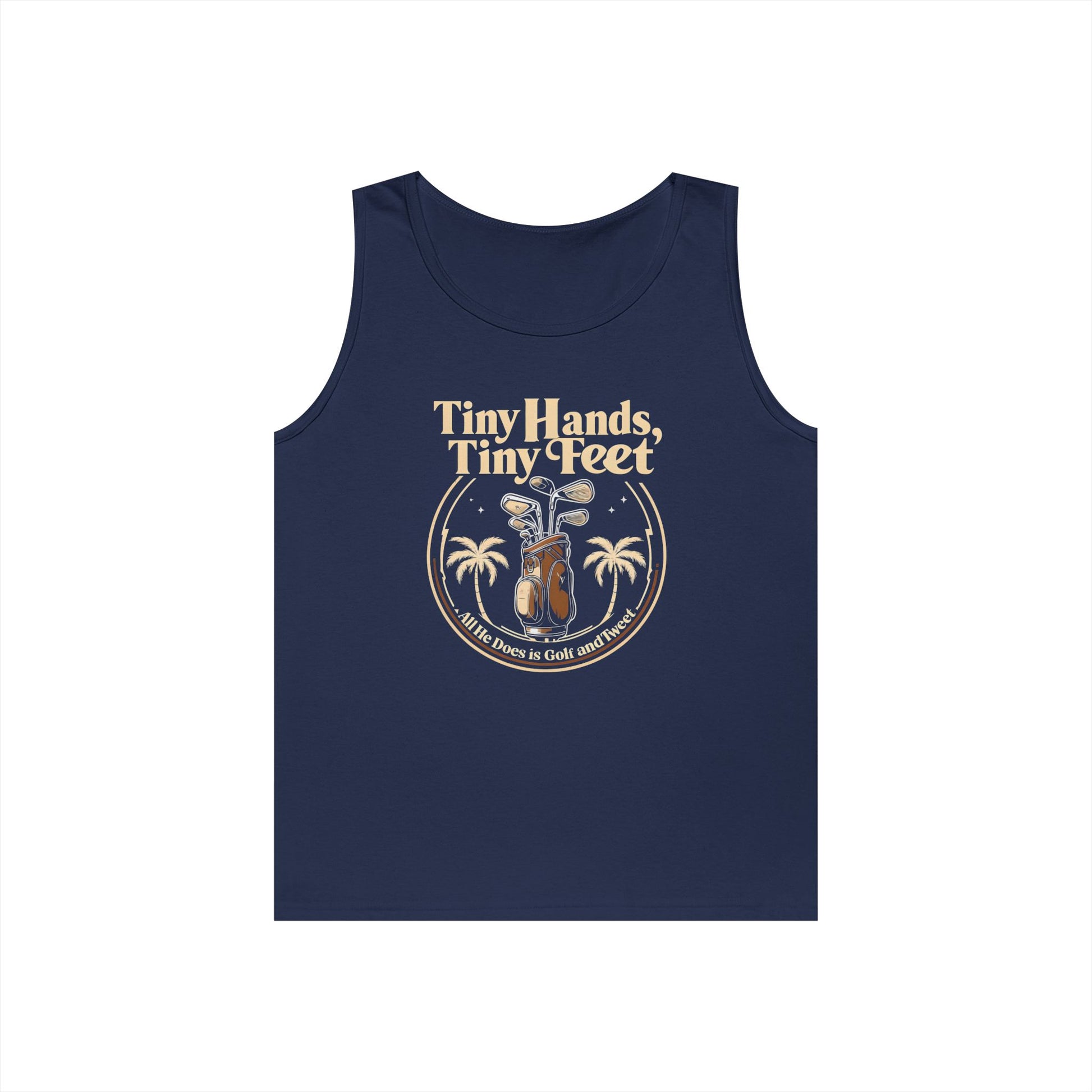 Tiny Hands Tiny Feet - All He Does is Golf and Tweet, unisex tank top, anti trump unisex tank top, protest Tank top, unisex fit